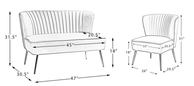 Delivery Only! Our Black Velvet 3 Piece Lounge Set includes one loveseat and two matching accent chairs. Each piece is wrapped in beautiful black velvet upholstery for a luxe look. We love the flared gold finished metal legs on all three pieces, for that eye-catching shine.
